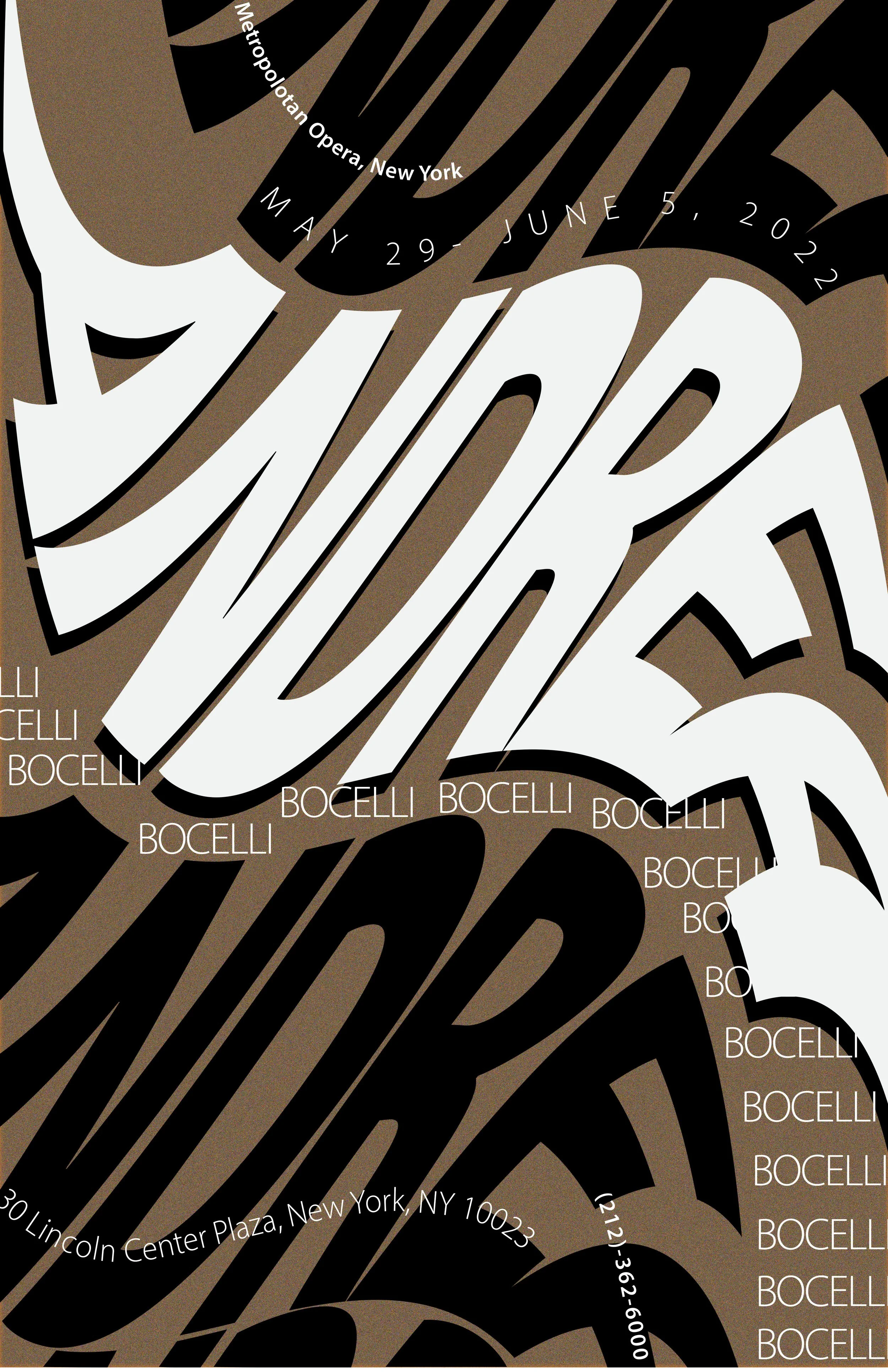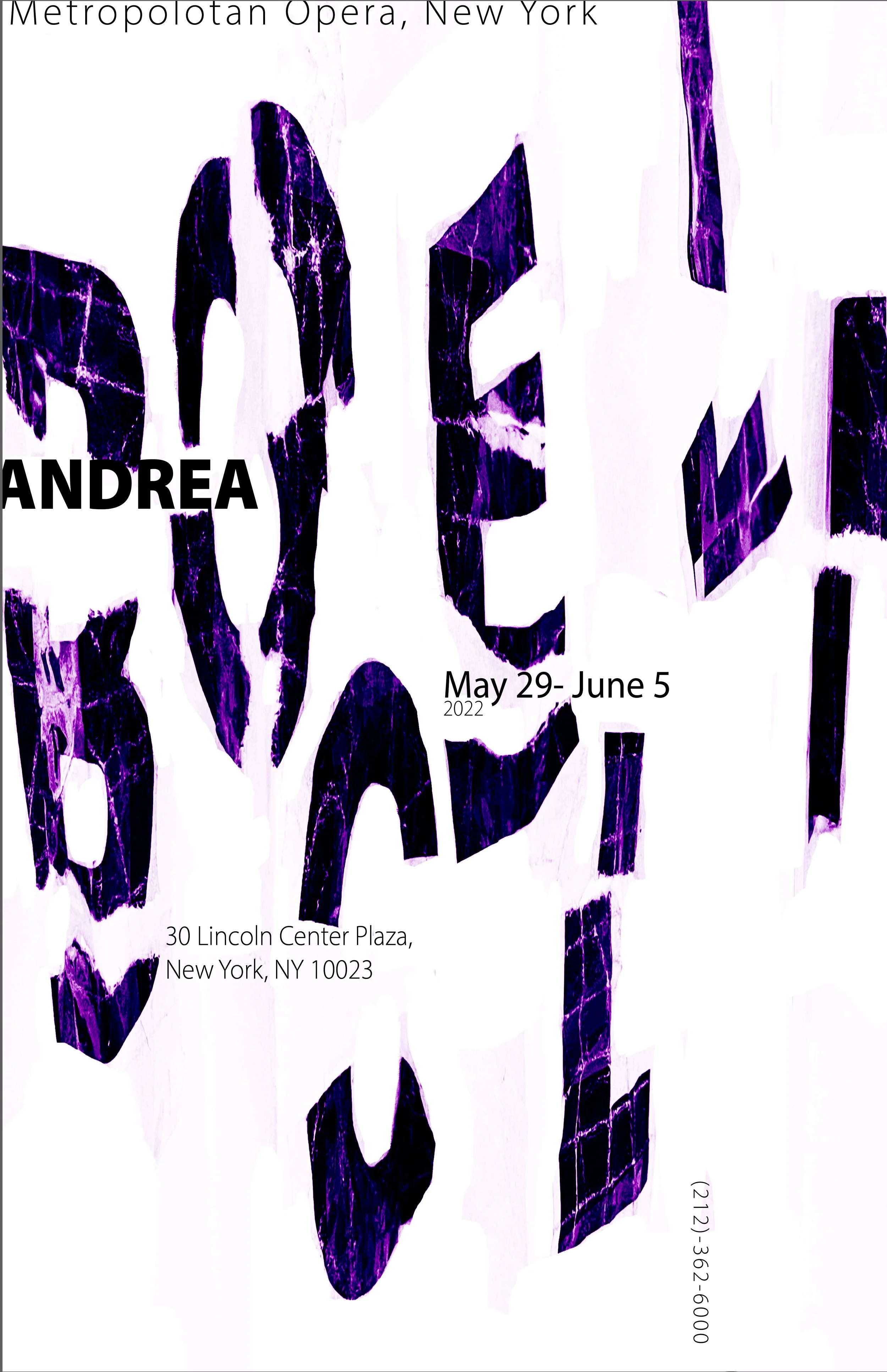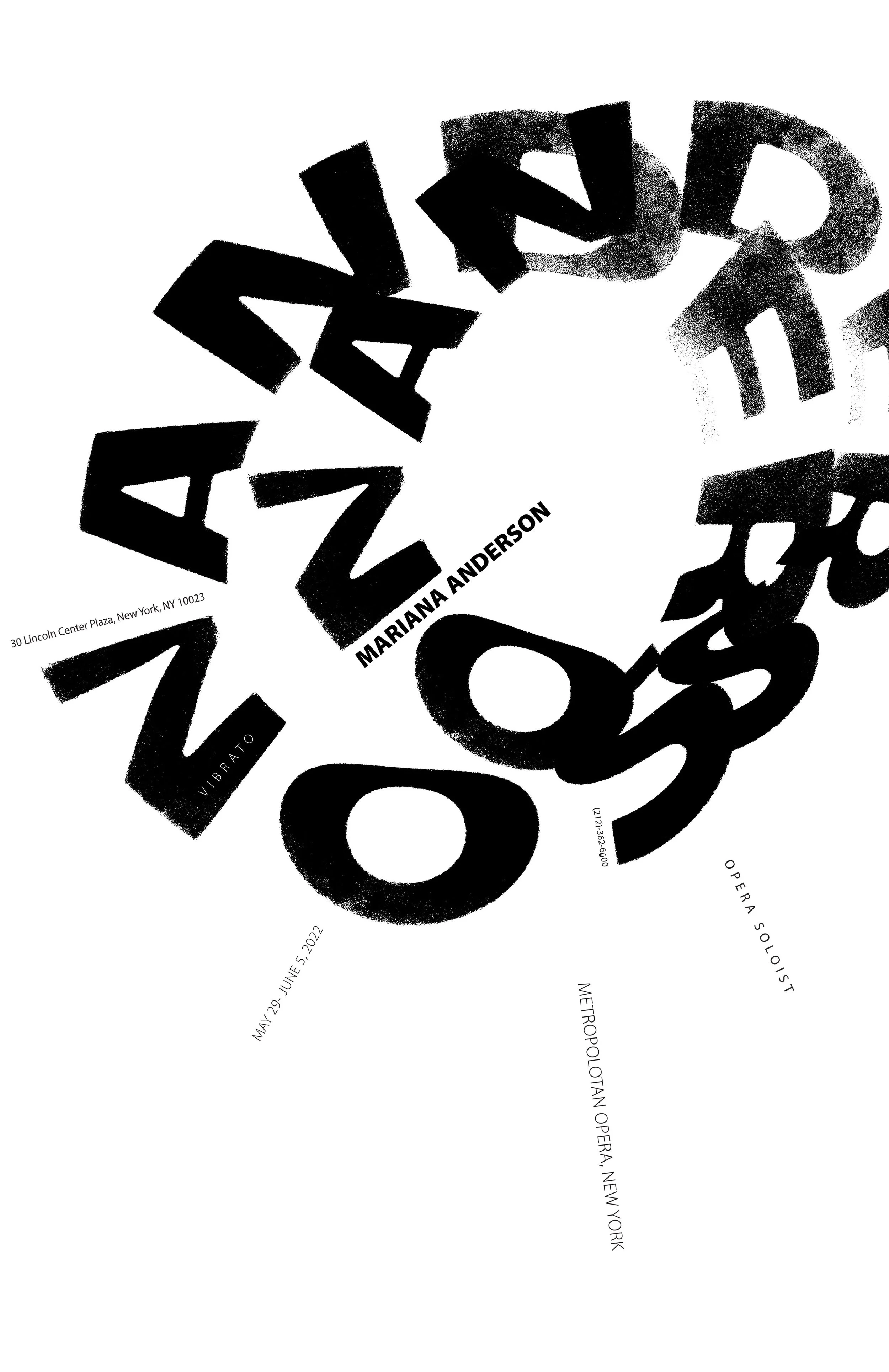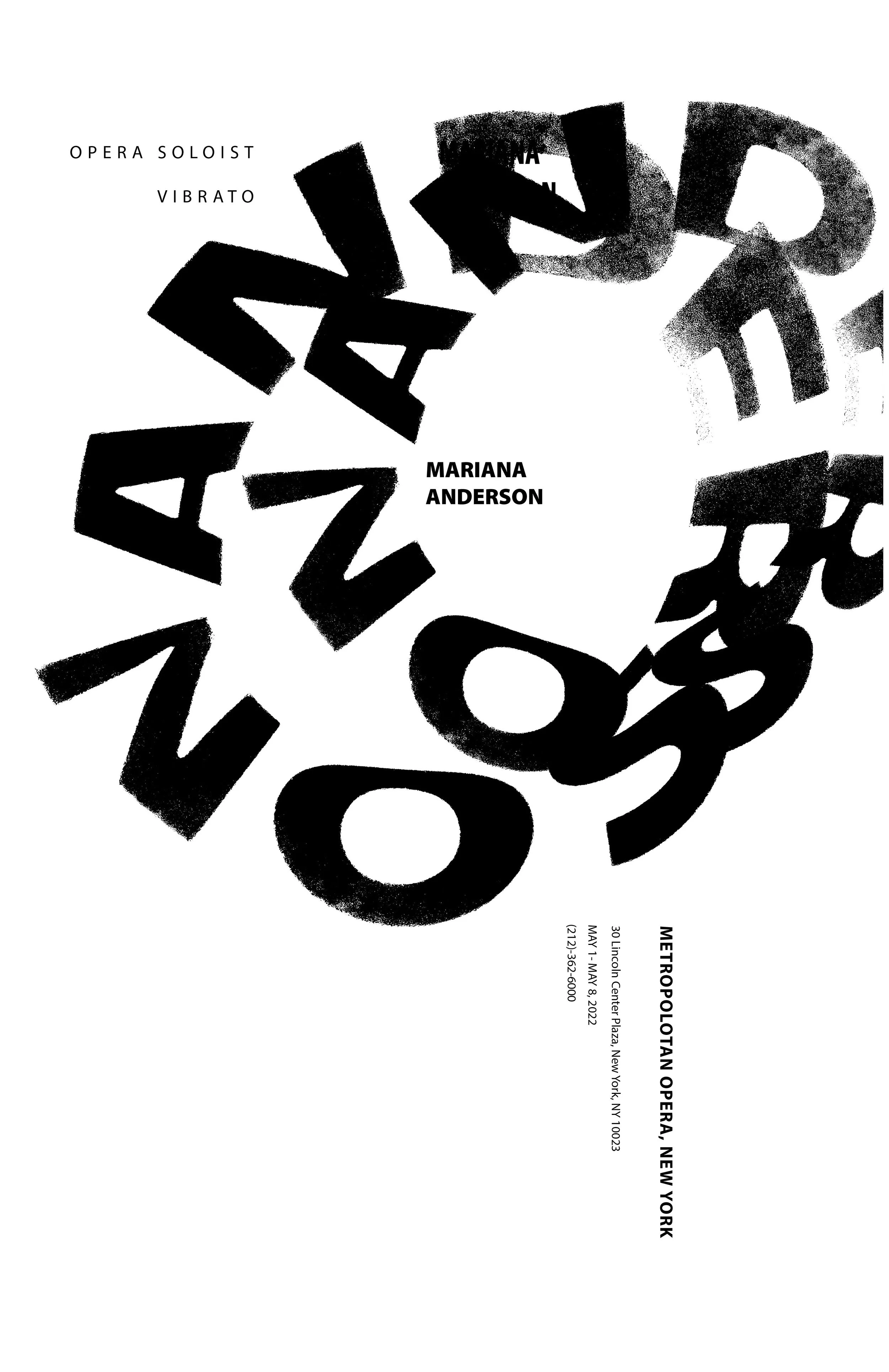 I was tasked with designing a three-poster series that embodied the essence of classic opera singers: Marian Anderson, Andrea Bocelli, and Fairuz. This project taught me the importance of experimentation and research in my design process.